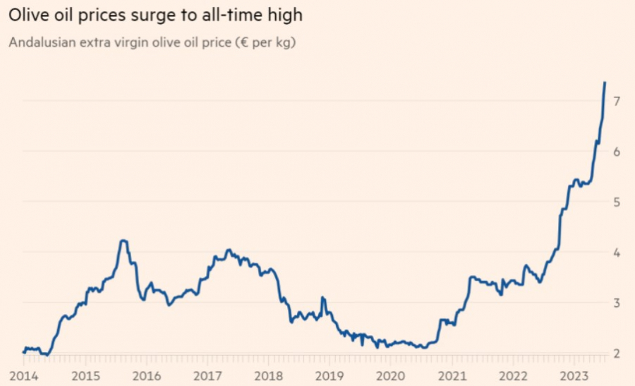 De olijfolie prijzen schieten omhoog en een einde van deze stijging is niet in zicht.